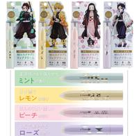 以动画中的四大人气角色炭治郎、襧豆子、善逸和蝴蝶忍四个人气角色为主视觉,每个角色都有专属的代表色和口味,分别推出眼线液笔、眼线笔和唇部磨砂膏三款商品。