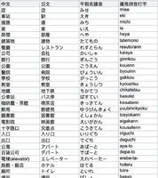 场所(ばしょ)、駅(えき)、レストラン、地下鉄(ちかてつ)、バス停(てい)、邮便局(ゆうびんきょく)トイレ、银行(ぎんこう)、ホテル、デパート