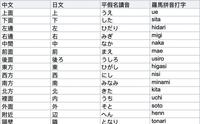 上(うえ)、下(した)、左(ひだり)、右(みぎ)、中(なか)、前(まえ)、后ろ(うしろ)、内(うち)、外(そと)、隣(となり)