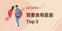 有句话说,每个成功的男人背后,都有一位伟大的女性,她们不仅是事业上的助力,同时也是家庭中的贤内助,娶到她们可以说是三生有幸吧!有些女孩在婚前就有成为好妻子、好妈妈的特质,但有些人则是先前看不出来,但却拥有婚后容易成为贤妻良母的特质。12星座中,谁是贤妻良母代表呢?来看看小编整理的前5名吧!