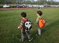 有了胸扣孩子背起包包时,书包就比较不容易脱落