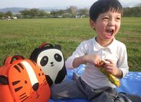 外出野餐时,后背包可以放下孩子爱吃的零食饼乾