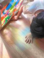 完成的作品让阳光穿透,产生缤纷灿烂的色彩光影。